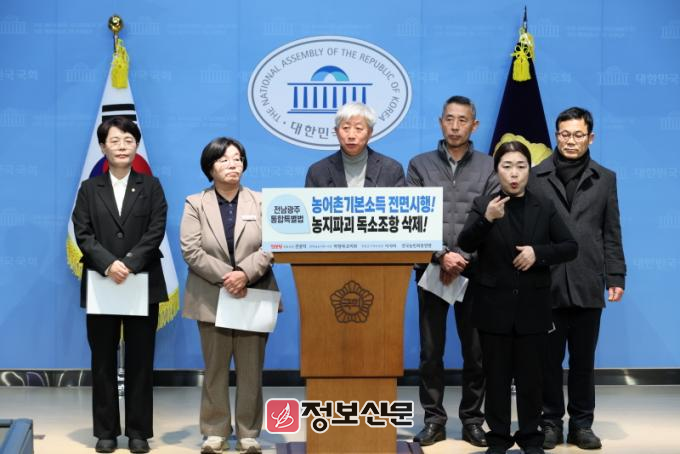 박 의원은 3일 국회에서 진보당 소속 전종덕 의원과 함께 기자회견을 열고 전남광주통합특별시가 출범하면 농어촌기본소득을 전면 시행할 수 있도록 관련 특별법 조항을 유지ㆍ강화해야 한다고 밝혔다.