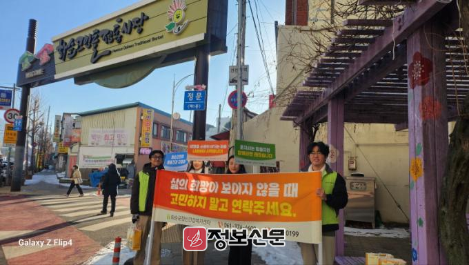 이날 캠페인에서는 겨울철 한파로 심신이 지친 상인과 방문객들의 마음 건강을 살피고, 위기 상황 시 도움을 받을 수 있는 24시간 정신건강 상담 전화 등 지원체계를 알리기 위해 마련됐다.