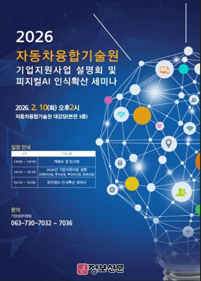이번 행사는 도와 자동차융합기술원이 공동으로 올해 기업지원사업을 도내 기업에 체계적으로 안내하고, 제조혁신의 핵심 기술로 주목받는 피지컬AI(Physical AI)에 대한 이해를 높이기 위해 마련됐다.