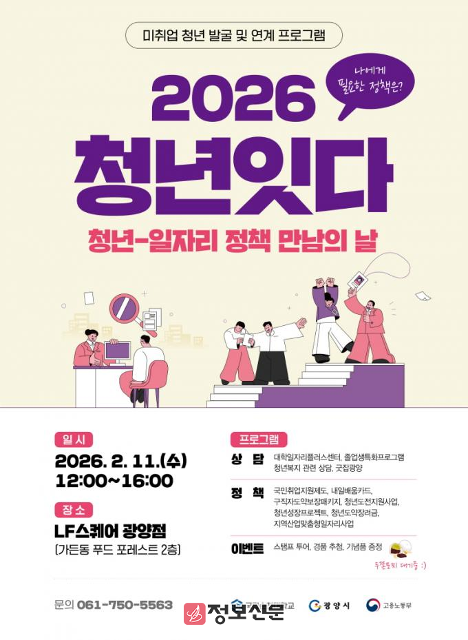 한편, 「2026 청년 잇다(청년-일자리 정책 만남의 날)」은 별도의 사전 신청 없이 행사 당일 현장에서 참여할 수 있다.