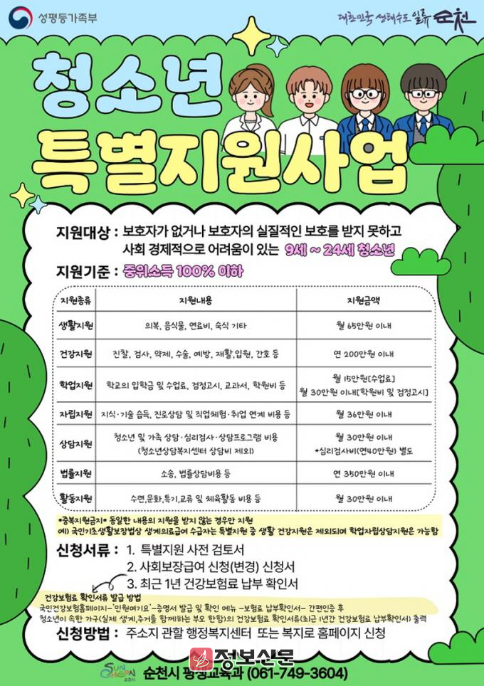 ![]() 순천시, 위기청소년 특별지원 대상자 모집 |
