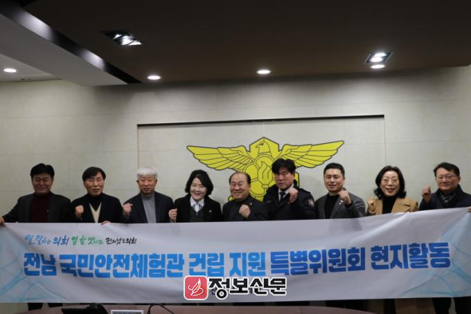 ![]() 전라남도의회 ‘전남 국민안전체험관 건립 지원 특별위원회’가체험관 추진상황을 보고 받고 있다. |