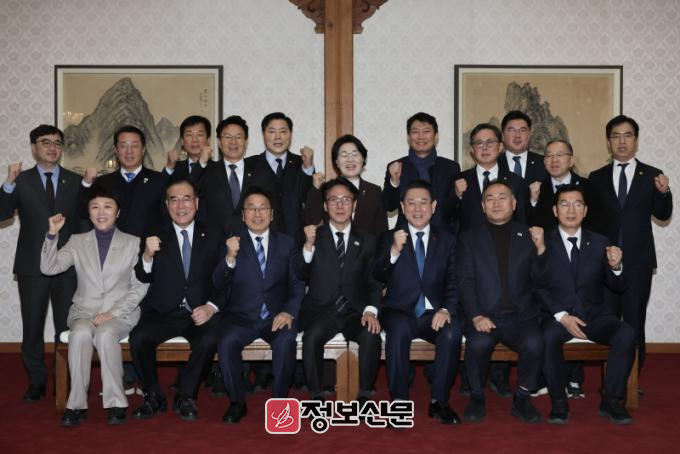 ![]() 김영록 전라남도지사가 9일 강기정 광주광역시장, 민주당 광주·전남 국회의원들과 함께 국무총리 공관에서 김민석 총리와 긴급 면담을 하고 기념촬영을 하고 있다. (국무총리실 제공) |