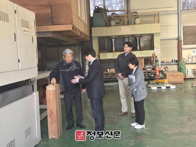 이 부시장은 이날 ㈜한우물과 전일목재산업㈜를 차례로 찾아 생산시설을 둘러보고 기업 현황과 애로사항을 청취했다.