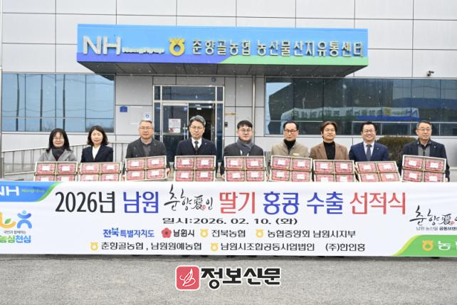 남원시는 지난 10일 춘향골농협 농산물산지유통센터(APC)(조합장 김영규)에서 이성호 남원시 부시장과 시‧도의회 의원, 전북도 및 농협 관계자, 수출 업체 관계자 등 20여 명이 참석한 가운데 남원 딸기 홍콩 수출 선적식을 개최했다고 밝혔다.