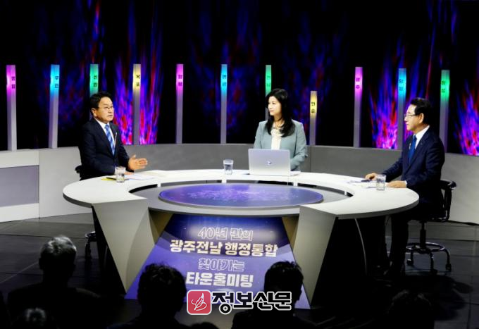 광주광역시(시장 강기정)와 전라남도(지사 김영록)는 10일 광주MBC 공개홀에서 시·도민 150여명이 참석한 가운데 ‘광주·전남 행정통합 광주권 타운홀미팅’을 열고 공개 토론을 진행했다.