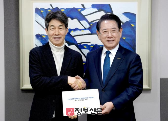 김영록 지사는 지난 8일 국회의원 제5차 간담회, 9일 국무총리 면담에 이어 10일 국회에서 신정훈 행정안전위원장과 윤건영 행정안전위원회 법안심사제1소위원장을 차례로 만나 행정통합 특별법 핵심 특례 반영을 요청했다.
