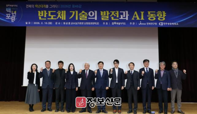 전북연구원 최백렬 원장은 “반도체가 우리나라의 핵심 산업이라는 점은 널리 알려져 있지만, 그 내부의 기술적 구조와 변화 흐름까지 이해할 수 있는 기회는 많지 않다”며, “이번 백년포럼은 반도체와 AI라는 핵심 기술을 보다 깊이 있게 이해하는 자리였다는 점에서 의미가 크다”고 밝혔다.