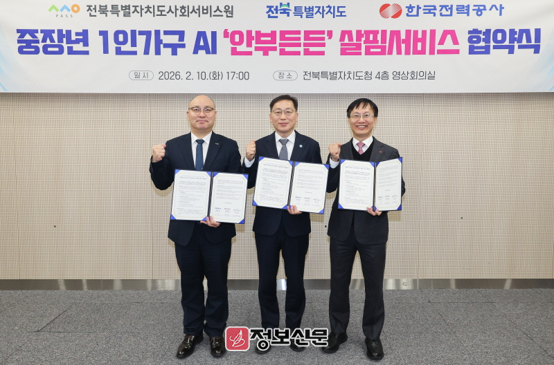 ![]() 전북특별자치도, 중장년 1인가구 AI 안부든든 살핌서비스 업무협약 체결 |