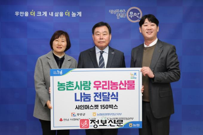 지난 10일 군청에서 열린 기탁식에서는 NH농협 무안군지부(지부장 최평강)가 도농 상생 차원의 우리 농산물 나눔 활동으로 420만 원 상당의 과일 150박스를 전달했다.