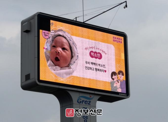 사업 내용은 출생 가정을 대상으로 전광판·배너·온라인 채널 등을 활용해 아이의 탄생을 축하하는 메시지를 송출하는 것으로, 이를 통해 아이의 첫 시작을 지역사회가 함께 축하하고 출산 가정이 지역의 따뜻한 응원 속에서 양육을 시작할 수 있는 분위기를 조성한다는 계획이다.