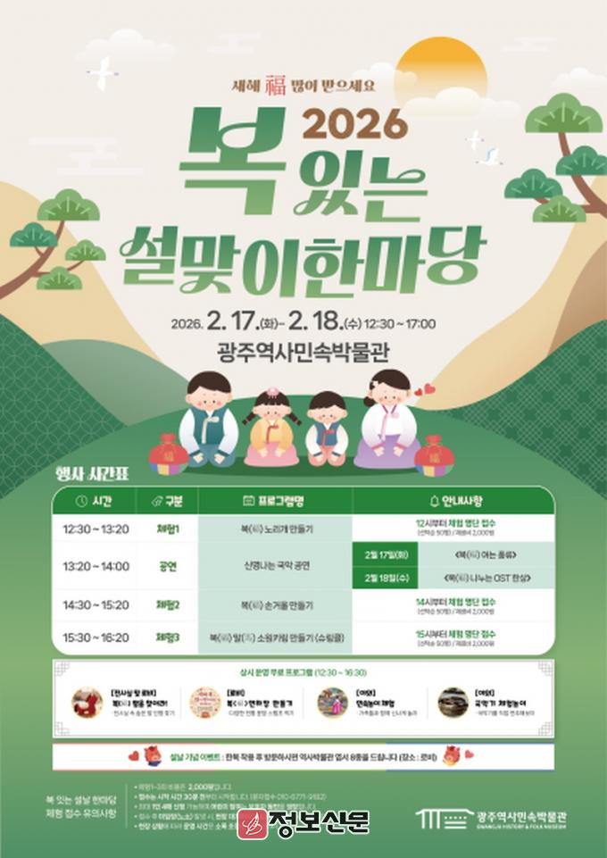 ![]() 광주광역시 역사민속박물관, 2026 설맞이 한마당 행사 개최 |