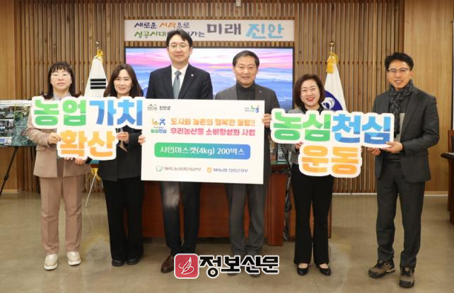 한편, NH농협 진안군지부는 도시와 농촌이 함께 상생하는 사회적 가치를 실현하여, 농산물 소비촉진과 더불어 지역사회 꾸준한 사회공헌 활동을 통해 지역사회와 상생에 기여하고 있다.