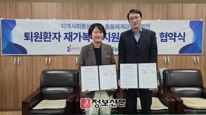 해남군과 해남종합병원(원장 김동국), 해남우리종합병원(원장 김옥민)은 지난 6일‘퇴원 환자 재가 복귀 지원을 위한 업무 협약’을 체결했다. 이번 협약은 전문 의료 사회복지사가 상주하는 지역 의료기관과 협력해 퇴원 직후 발생할 수 있는‘돌봄 공백’을 메우기 위해 마련됐다.