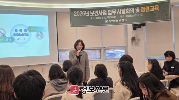 담양군은 올해 역점 사업으로 ▲의료·요양 통합돌봄 ▲장기요양 재택의료센터 ▲대상포진 사백신 도입 ▲모자보건사업 ▲요실금 치료 지원 ▲치매 조기 검진 ▲정신건강 심리상담 이용권(바우처) 지원 등을 추진할 방침이다. 아울러 이날 직원들의 청렴 의식을 높이고 깨끗한 공직문화를 조성하기 위한 청렴 교육도 함께 진행했다.