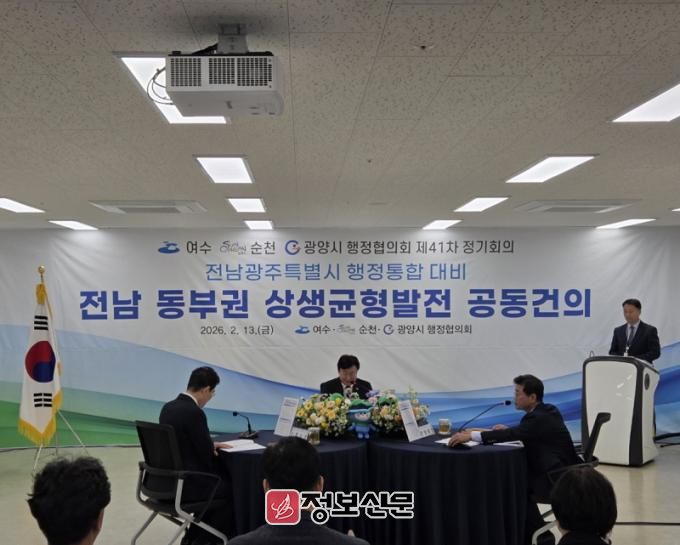 13일 여수시에 따르면, 협의회는 이날 국립순천대학교 우석홀에서 제41차 정기회의를 개최하고 행정통합이라는 거대한 변화의 흐름에서 전남 동부권의 밝은 미래를 담보하기 위한 공동건의 3건(여수시 발의 2건)을 공식 의결했다.