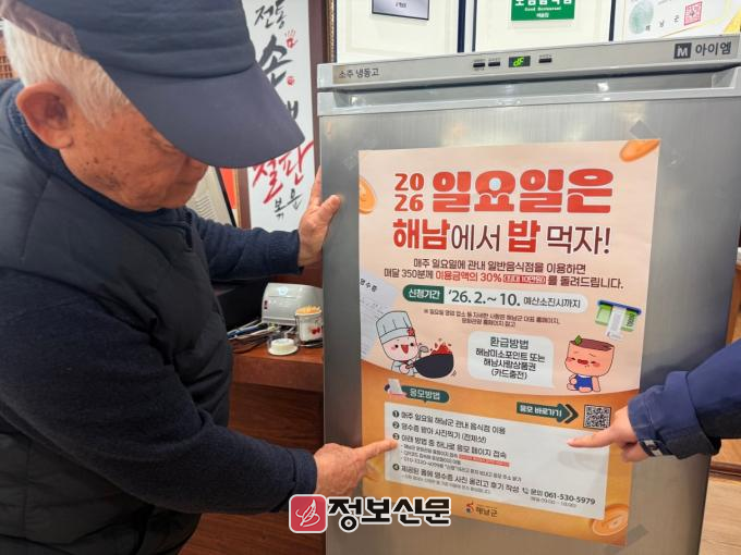 한편 해남군은 이번 사업의 성공적인 안착을 위해 관내 일요일 영업 음식점 업주들의 적극적인 협조를 요청했다.