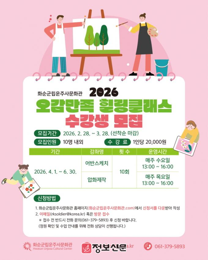 ![]() 화순군립운주사문화관, 2026년 「오감만족 힐링클래스」 수강생 모집 |
