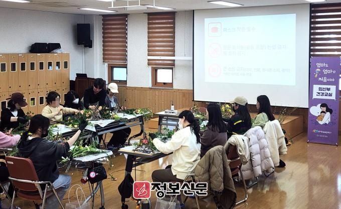 임신부 건강 교실은 전문 플로리스트의 지도로 봄꽃을 활용해 자신만의 꽃바구니를 완성하는 시간을 가졌다.