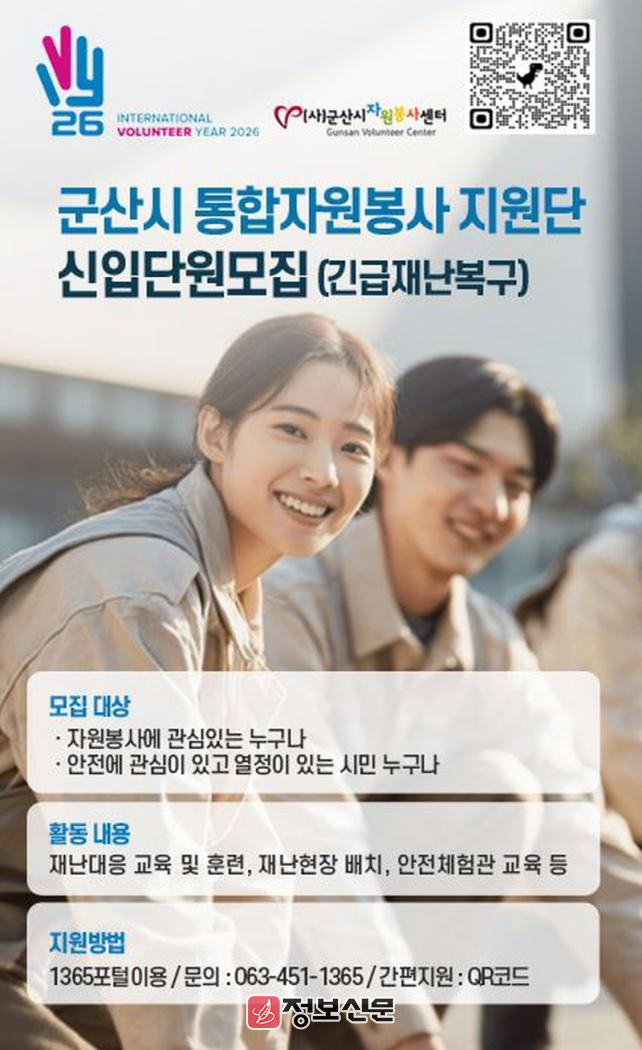 ![]() 군산시자원봉사센터, 재난대응 ‘통합자원봉사지원단’ 모집 |