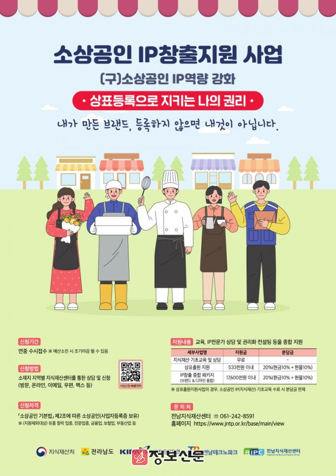 김형성 전남도 중소벤처기업과장은 “상표는 사업의 기본이 되는 중요한 무형자산으로, 브랜드를 선점하고 보호하는 것이 소상공인의 경쟁력 확보로 이어진다”며 “소상공인이 지식재산을 기반으로 안정적 성장을 이루도록 적극 지원하겠다”고 말했다.