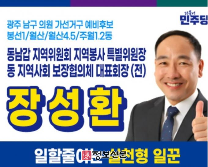 ![]() 장성환 더불어민주당 광주 남구 구의원 예비후보, 남구 구의원 출마 공식 선언 |