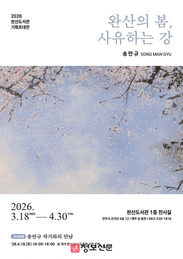 ![]() 전주시 완산도서관 기획초대전, 송만규 작가의 ‘완산의봄, 사유하는 강’ 개최 |