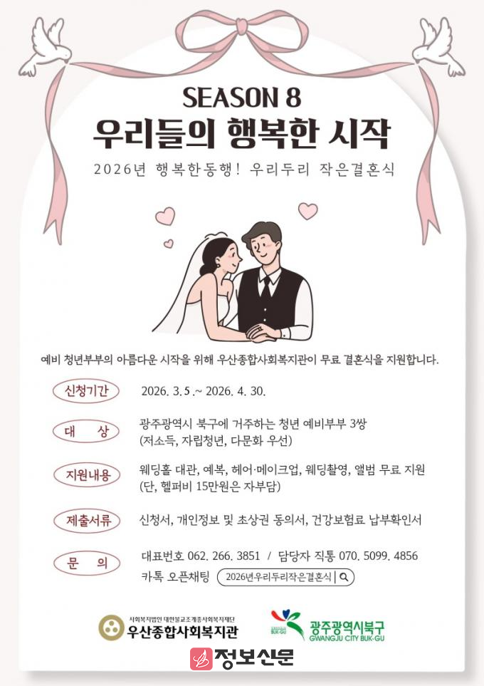 ![]() 광주시 북구, 결혼식을 무료로, ‘우리두리 작은 결혼식’ 참여자 모집 |