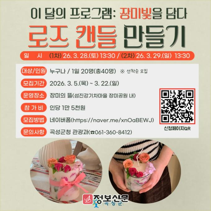 ![]() 곡성군, 로즈캔들 만들기 이벤트 체험객 모집 |