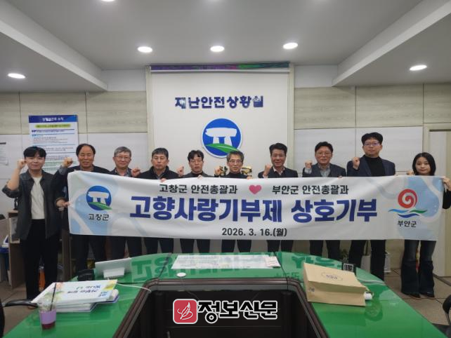 ![]() 고창군 안전총괄과, 부안군 안전총괄과와 고향사랑 기부금 상호기부 동참 |