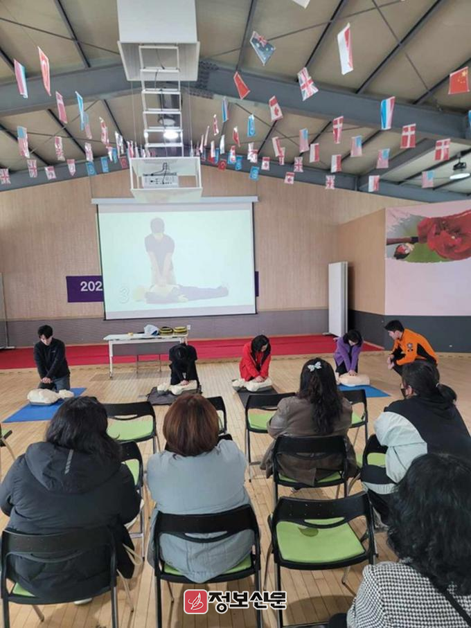 주요 내용은 ▲심정지 환자 발생 시 행동 요령 ▲올바른 심폐소생술(CPR) 방법 ▲자동심장충격기(AED) 사용법 ▲기도 폐쇄 시 응급처치(하임리히법) 등 응급 상황 시 활용 가능한 실습 중심의 교육으로 구성됐다.