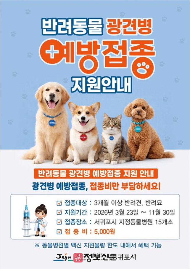 ![]() 서귀포시, 반려동물 광견병 예방접종 지원사업 추진 |
