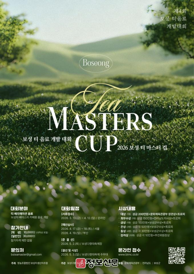 특히, 이전 대회의 출품 음료가 음료 프랜차이즈와 협업해 보성 대표(시그니처) 음료로 출시되는 등 실제 산업 연계 성과로 이어진 바 있어, 차 음료 시장에서 보성차의 활용 가능성을 확대하는 계기가 될 것으로 전망된다. 대회 참가 신청과 자세한 사항은 ‘보성 티 마스터컵’ 공식 누리집(www.btmc.co.kr)에서 확인할 수 있다.