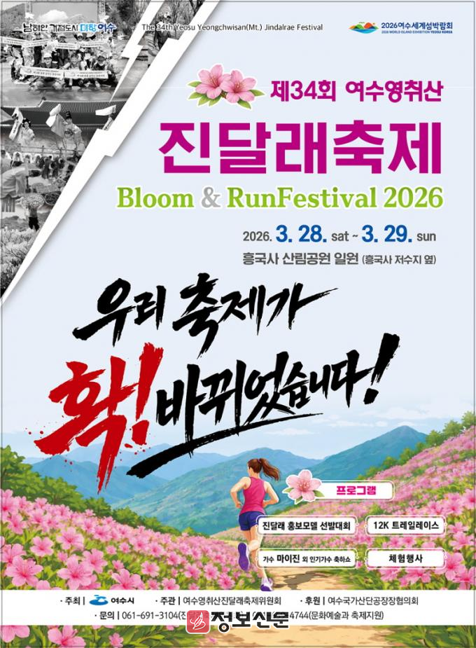 시 관계자는 “영취산의 아름다운 봄 풍경 속에서 시민과 관광객 모두가 특별한 추억을 만들 수 있는 축제가 될 것”이라며 “많은 분들이 찾아 만개한 진달래를 감상하며 봄의 정취를 느끼시길 바란다”고 말했다.