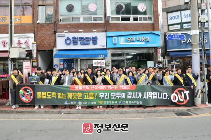 참여자들은 ‘불법도박 없는 깨끗한 고흥! 우리 모두의 감시가 시작입니다’라는 슬로건 아래 어깨띠와 피켓을 활용해 도박 근절에 대한 군민들의 적극적인 참여를 독려했다.
