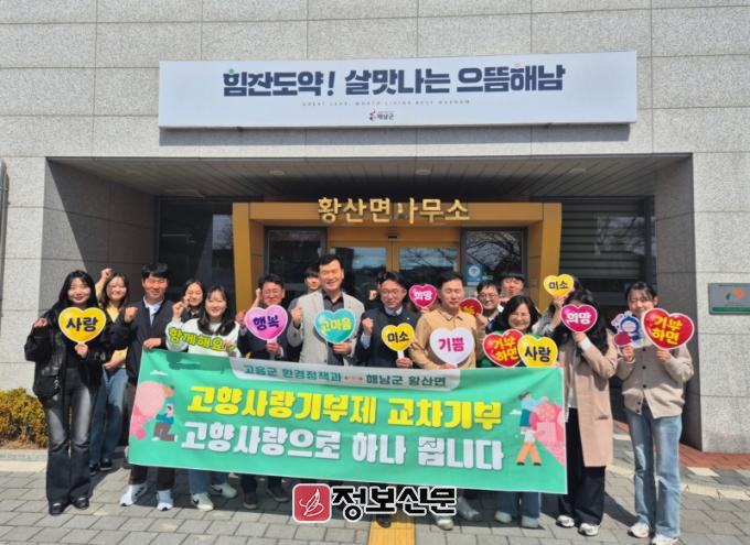 군 환경정책과 관계자는 “고향사랑기부제를 통해 해남군과 소중한 인연을 맺게 돼 뜻깊다”며 “이번 교차 기부가 두 지역의 우호 관계를 더욱 돈독히 하고, 기부 문화가 공직사회를 넘어 민간으로 확산되는 계기가 되길 바란다”고 전했다.