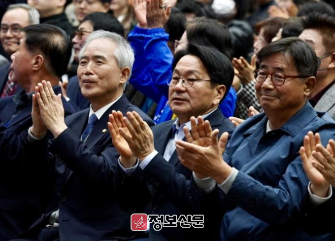 ![]() 강기정 민주당 전남광주특별시장 예비후보가 21일 김대중컨벤션센터에서 열린 ‘기초단체장 후보자 공개 합동연설회장’에서 후보자들의 연설을 경청하고 있다.