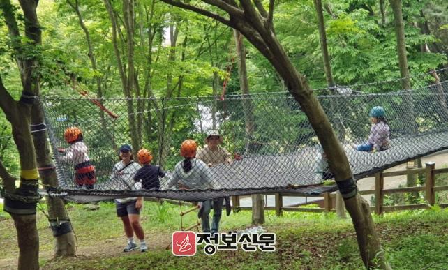 나무놀이숲은 아동의 신체 발달을 돕기 위해 조성된 맞춤형 산림 공간이다. 이곳에서는 전문 강사의 지도 아래 트리클라이밍과 버마다리, 짚라인 등 나무와 로프를 활용한 산림 체험이 진행된다. 또한 실생활에 활용 가능한 밧줄 매듭법 교육을 병행해 아동들의 위기 대처 능력 향상을 돕는다.