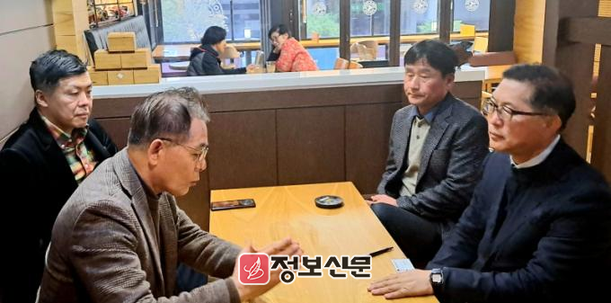 ![]() 지난 초, 새만금 포엑스(POEX) 김승수 이사장이 이끄는 중국교역단은 목포를 방문해 더불어민주당 강성휘 목포시장 예비후보와 간담회를 가졌다.(좌측 첫번째 새만금 포엑스 김승수 이사장, 좌측 두번째 중국 교역단 이일만 책임부장, 우측 첫번째 강성휘 예비후보)