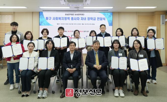 동구 관계자는 “지역사회 최일선에서 헌신하는 사회복지 종사자들의 노고에 깊이 감사드린다”며 “이번 장학금이 자녀들의 학업 부담을 덜고 안정적인 교육환경 조성에 도움이 되길 바라며, 지역사회 나눔 문화 확산에도 의미 있는 계기가 되길 기대한다”고 밝혔다.