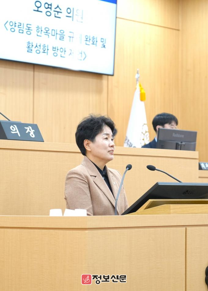 오 의원은 “현대식 건축자재 사용 허용과 개량형 한옥 도입 확대 등을 통해 주거 편의성과 경제성을 동시에 확보할 수 있도록 규제를 완화하고, 신축·대수선 지원현실화와 필수 공사 별도 지원으로 주민들이 체감할 수 있는 지원체계 마련”을 강조했다.
