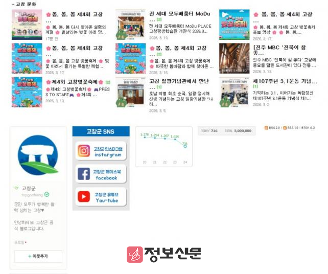 ![]() 고창군, 공식블로그 누적 방문자수 500만명 돌파 |