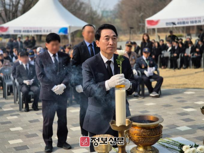 박수현 출마예정자는 ‘서해수호의 날’을 맞아 천안 태조산 충혼탑에서 열린 천안함 46용사 추모식을 찾았다. 박수현 출마예정자는 “우리 용사들의 서해 수호를 위한 희생을 깊이 기리며, 굳건한 안보 위에 한반도 평화와 번영을 꽃피우겠다는 마음을 다시 새긴다”며 “유가족의 슬픔과 그리움을 차마 다 헤아릴 수 없다. 깊은 위로와 함께 국가가 항상 곁에 있도록 노력하겠다는 말씀을 드린다”고 말했다.