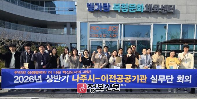 나주시는 지난 26일 빛가람 복합문화체육센터에서 ‘2026년 상반기 나주시–이전공공기관 상생협력 실무단 회의’를 개최했다고 27일 밝혔다.