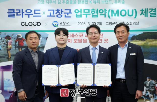 30일 고창군에 따르면 이날 오전 고창군수와 손진수 클라우드 대표, 김현술 심원 만월어촌계장 등이 참석해 ‘지역 수산물 부가가치 창출 및 판로 확대를 위한 업무협약(MOU)’을 체결했다.