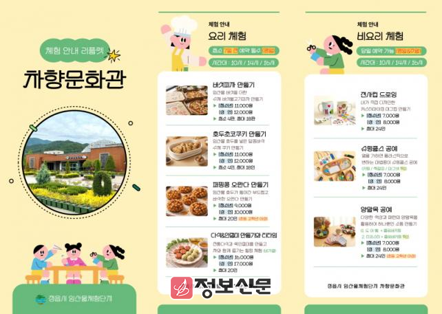 시 관계자는 “차향문화관 프로그램은 단순한 체험을 넘어 지역 임산물과 최신 문화 트렌드를 함께 경험할 수 있는 유익한 콘텐츠”라며 “앞으로도 알찬 프로그램 운영을 통해 신규 방문객 유입을 늘리고 지역 체험 관광 활성화에 힘쓰겠다”고 말했다.
