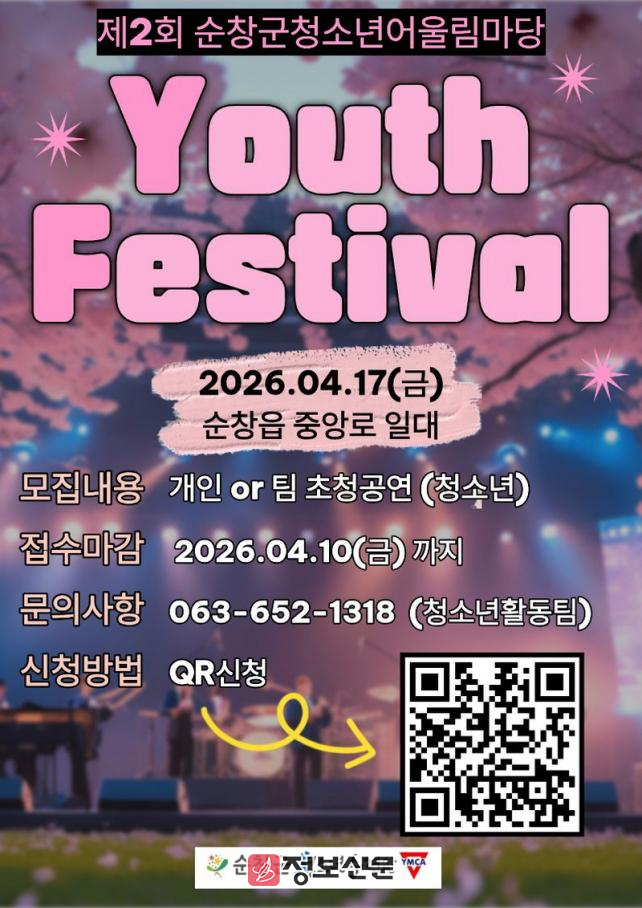 청소년어울림마당은 청소년과 군민이 함께 즐기는 순창 대표 청소년 축제로, 올해 두 번째로 열리는 이번 행사는 ‘제64회 순창군민의 날’과 ‘문집 골목페스티벌’과 연계해 체험부스와 다양한 청소년 공연이 어우러진 더욱 활기찬 행사로 운영될 예정이다.