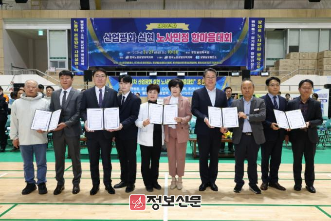 1부에서는 산업평화 정착과 지역발전에 기여한 모범근로자 19명에게 표창장을 수여했다. 이어 노사민정 대표가 함께 서명한 「광양시 노사민정 산업평화 공동선언」을 채택하며 상생 협력 체계 구축과 신뢰 기반 노사문화 정착을 통해 지역경제 활성화에 힘을 모으기로 했다.