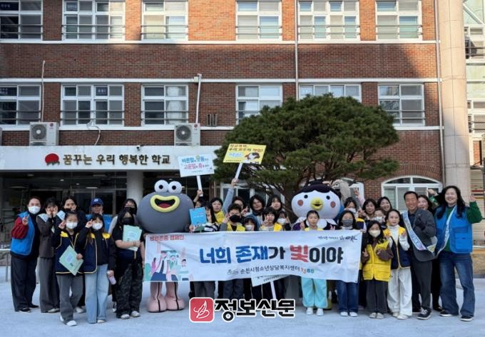 특히, 이번 캠페인은 순천시 캐릭터 ‘루미·뚱이’와 ‘순천시1388청소년지원단(단장 이호빈)’이 함께 진행해 학생들의 관심과 참여도를 높이고, 보다 친근하고 안전한 지역사회 분위기 조성에 기여하고 있다.