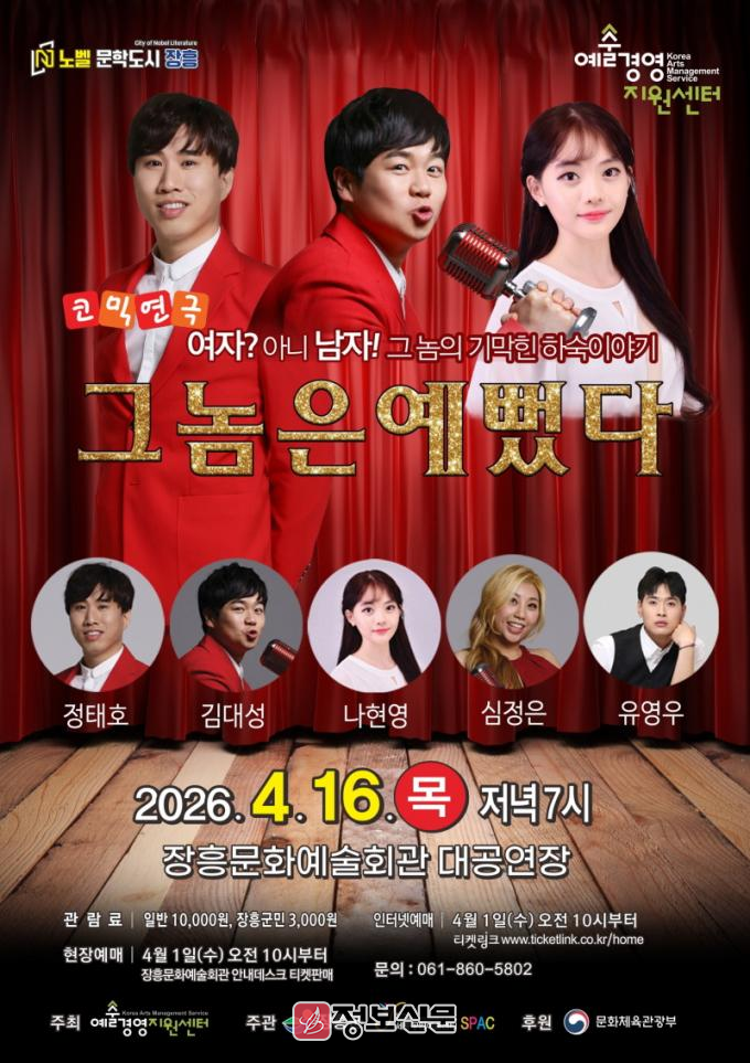 ![]() 장흥군, 코믹연극 ‘그놈은 예뻤다’ 장흥에서 만난다 |